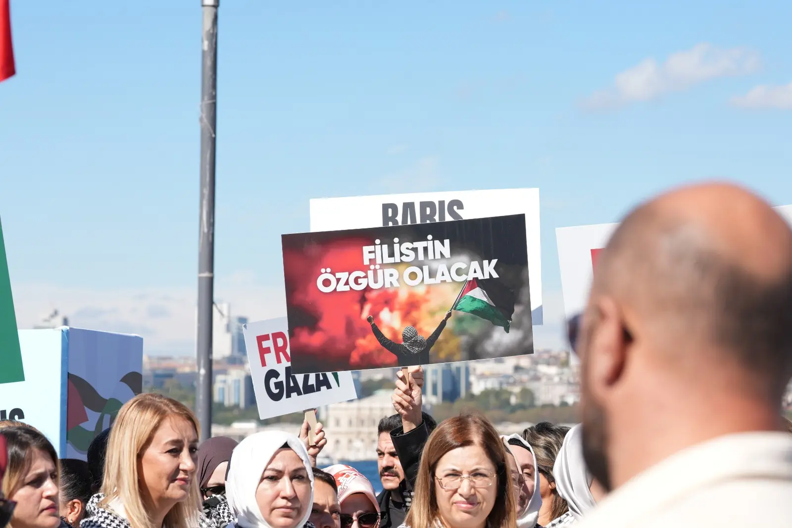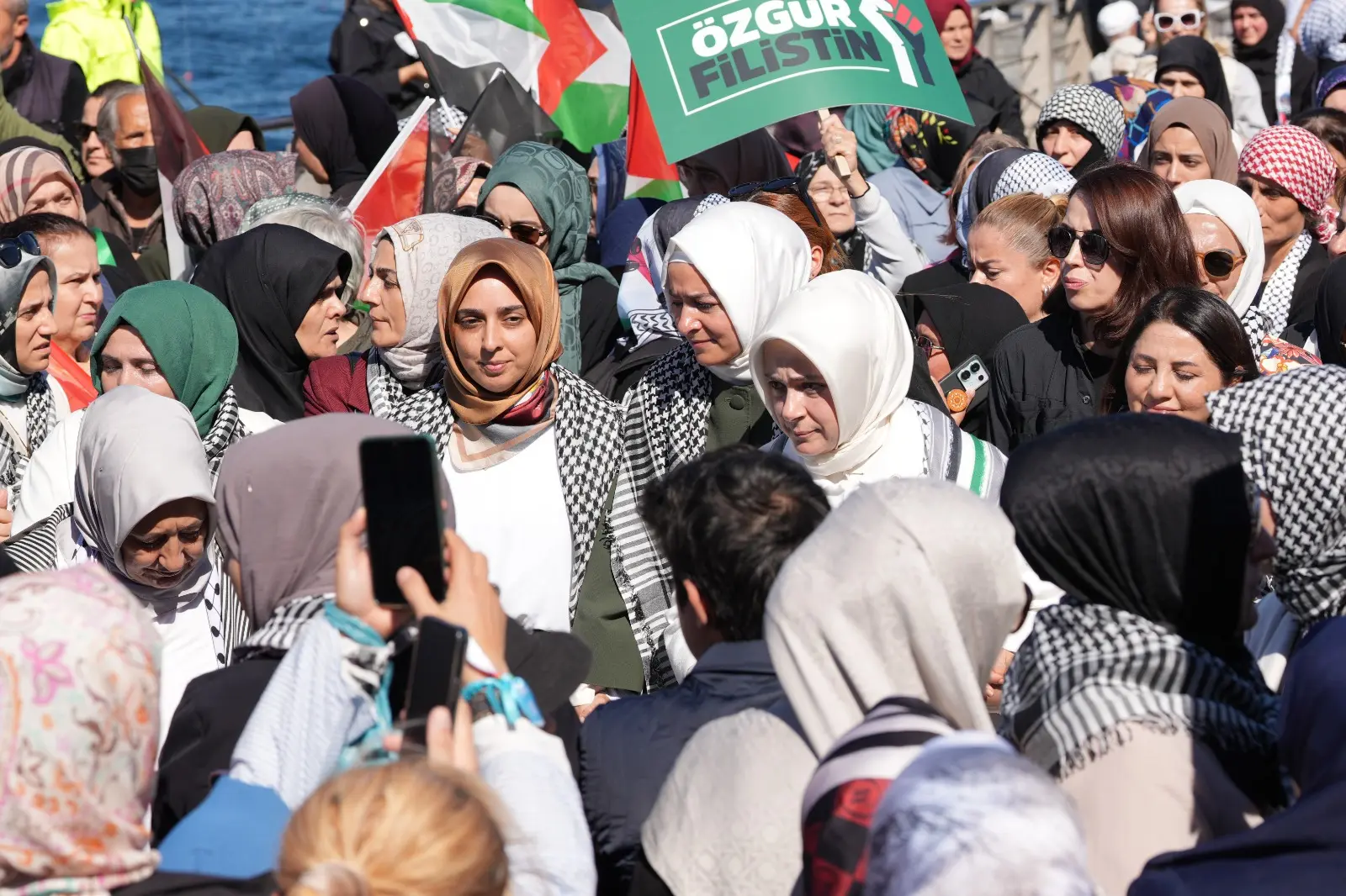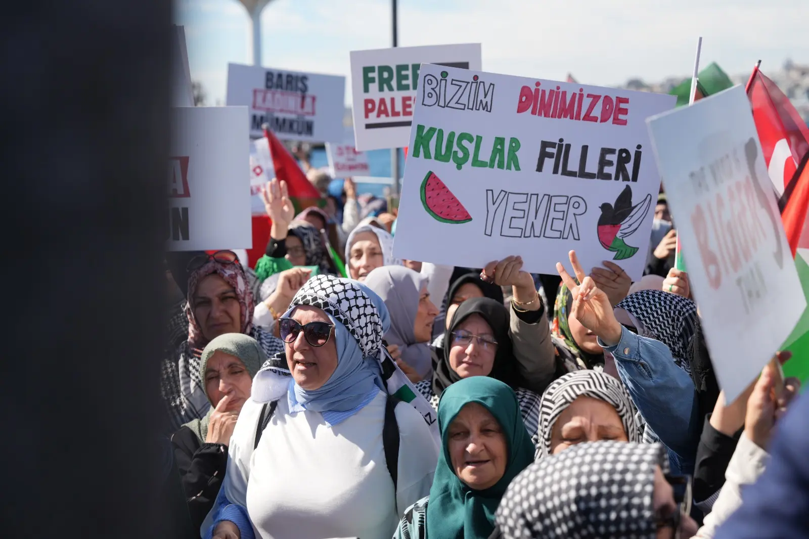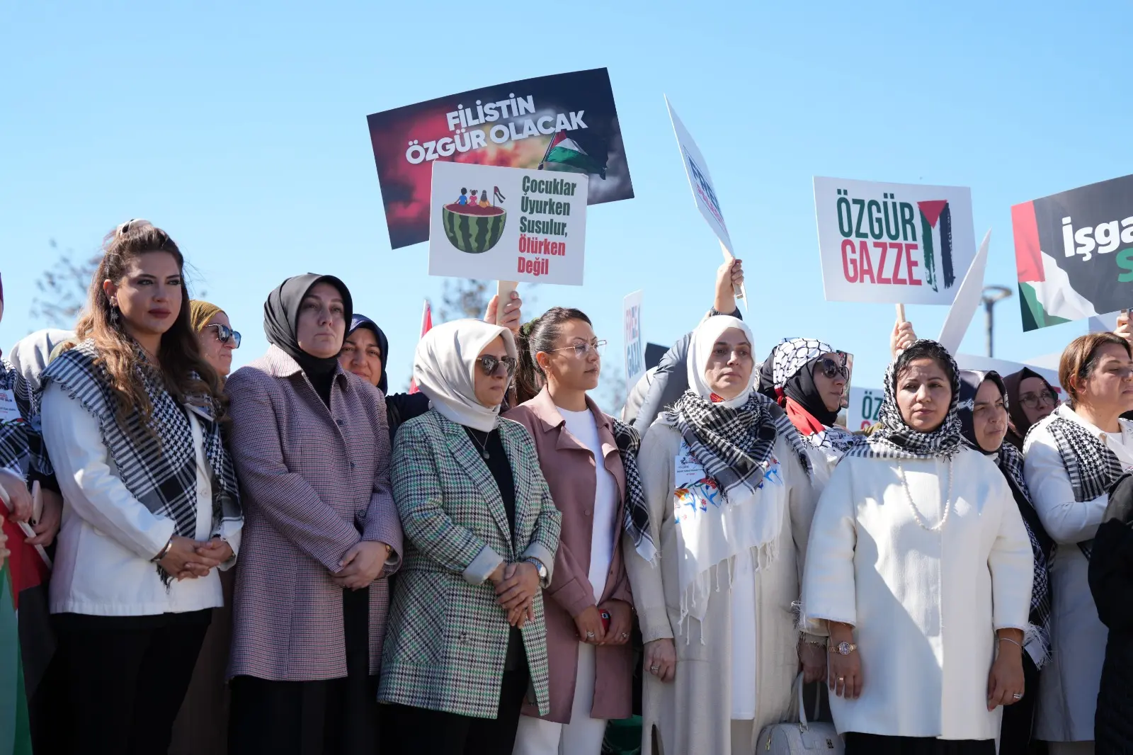 Bugün kadınlar olarak Gazze’nin sessiz çığlığına ses olmak için el ele verdiğimizi tüm dünyaya göstermek adına meydanlardayız.